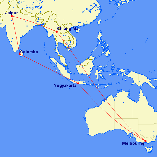 Flight time: Melbourne to Chiang Mai – 11 hours